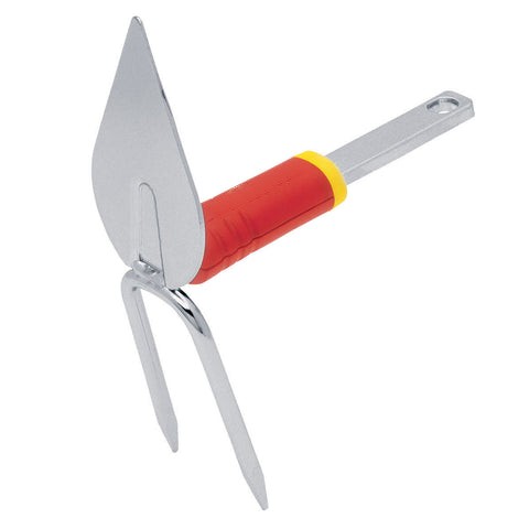 The Interlocken IMM Planting Hoe can be used in multiple ways when planting and sowing. Use the sharp steel prongs on the bottom of the tool to break up the soil before planting. Then, flip the tool over and use the pointed blade to dig rows where seeds will be planted. |